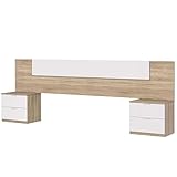 - Conjunto de dormitorio doble perfecto, se compone de dos mesitas de noche y un cabecero de pared, todos con un diseño minimalista, un acabado blanco impecable contrastado con el roble claro