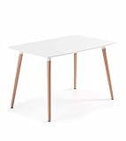 - Mesa de cocina de diseño moderno y estilo nórdico en color blanco, con patas de madera de haya. Compacta y fácil de limpiar, es perfecta para añadir un toque moderno y funcional a tu cocina