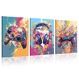 WENGTIAO 3 Piezas Grafiti Juegos Cuadros Enmarcados, Coloridas Auriculares Gmandos de Videojuegos Pintura sobre Lienzo para Salas de Juegos Habitaciones Juveniles Dormitorios Decoracion 30x40cmx3