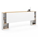 IDMarket Cleo - Cabecero de cama con pie (165 cm, con almacenamiento cerrado y nichos), color blanco y haya