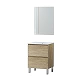 - MUEBLE FABRICADO EN BARCELONA, ESPAÑA - Conjunto de mueble de baño con lavabo y espejo aplique LED, con un estilo contemporáneo y elegante. Su acabado en Nature, lo hace combinable con cualquier...