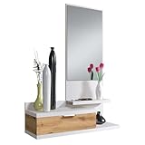 - El set de mueble recibidor vertical y espejo modelo Iria en color blanco y roble es la elección óptima para aquellos que buscan un espacio acogedor y elegante; con medidas de 60,5 cm x 28 cm x 186,5...