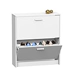 - MUEBLE PARA ZAPATOS TODO EN UNO: Este zapatero de HOMCOM combina dos compartimentos abatibles y tres estantes laterales con una amplia superficie superior, permitiendo organizar hasta 15 pares de...