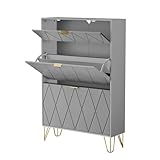 • DISEÑO ELEGANTE Y ACTUAL: Este zapatero de recibidor con puertas efecto madera y patrón geométrico aporta un toque elegante y contemporáneo al recibidor, al dormitorio o cualquier espacio del...
